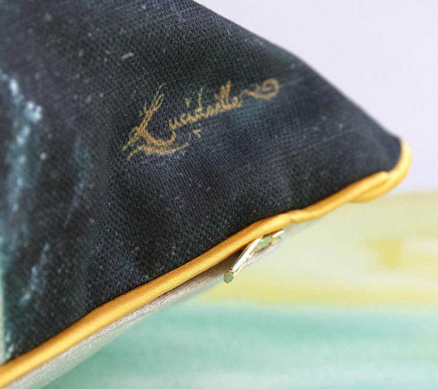 C’est un magnifique coussin : le dessin de Marie est super bien imprimé de manière qualitative. Le tissu est très beau, finement irisé. La finition du coussin au niveau des coutures est parfaite. Le tissu au dos est d’un bleu sublime. Cela donne envie de prendre Marie dans ses bras ! Une idée géniale pour un cadeau ou une décoration de sens dans sa maison.