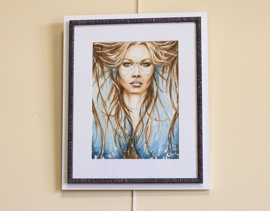 Aquarelle originale encadrée de Fée de la nuit de l’artiste Lucidaëlle.