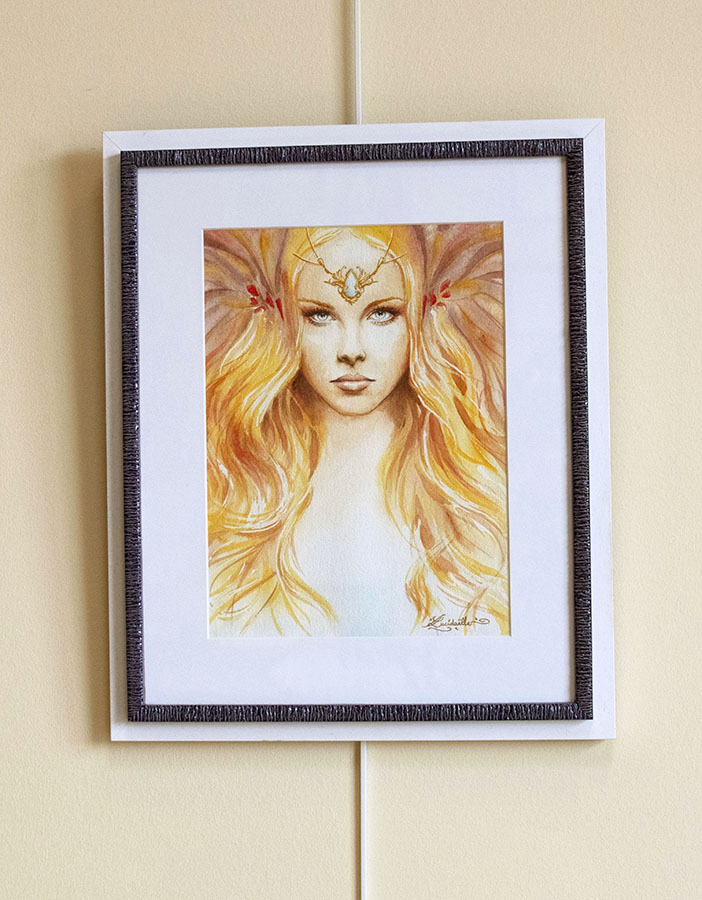 Aquarelle originale encadrée de Fée du jour de l’artiste Lucidaëlle.