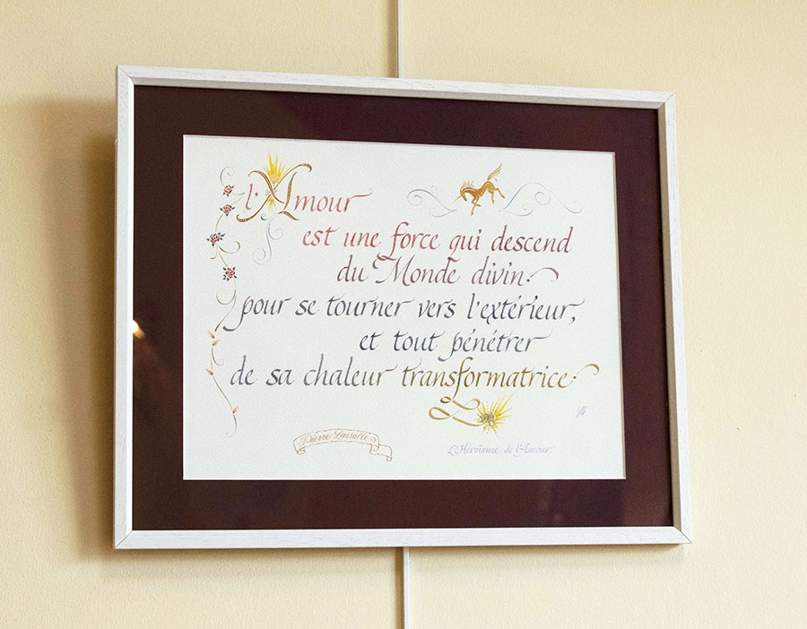 Citation de Pierre Lassalle Force d'Amour, calligraphiée par Jane Sullivan. Hommage à la Puissance de l’Amour.